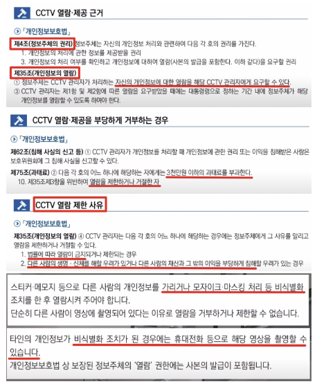 CCTV 열람 : 개인정보보호법 제4조, 제35조