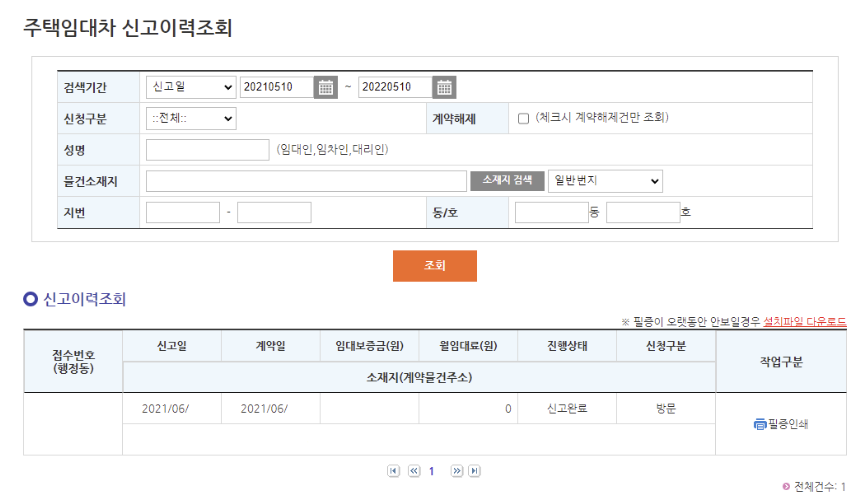 - 전월세신고 오프라인 확인 방법