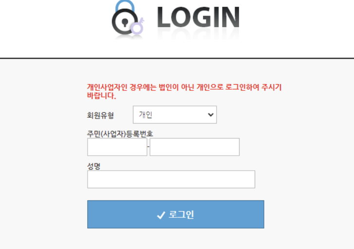 4. 로그인 창이 나오면 공동인증서를 이용해서 로그인을 해줍니다. 본인 확인은 해야하니까 꼭 필요한 과정입니다.