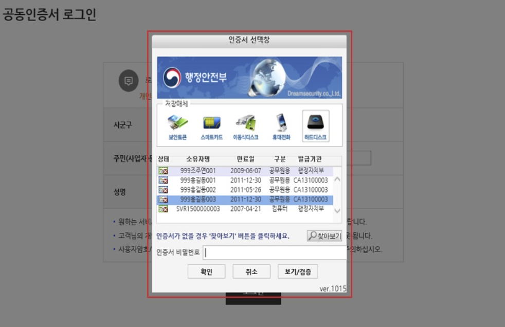 2. 공동인증서를 통해 로그인을 해줍니다.