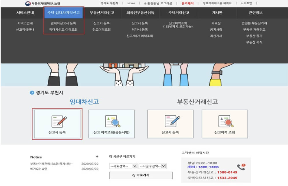 전월세신고 온라인 방법