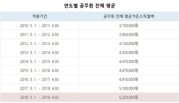 공무원 연금표 및 수령액 계산기