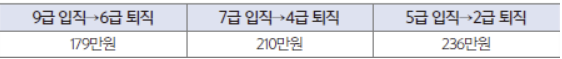 임용시기 및 급수에 따라 달라지는 연금수령액은 다음과 같습니다.