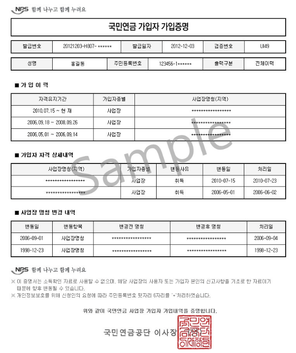 국민연금 가입 증명서는 단순 국민연금 확인 용도가 아닌, 개인의 경력 및 다니던 회사를 증명할 수 있는 좋은 수단이 됩니다. 4대보험 서류들은 이전 직장 혹은 사업 여부를 확인할 수 있어 은행 등 각종 기관에서 증빙으로 요청하고는 합니다.