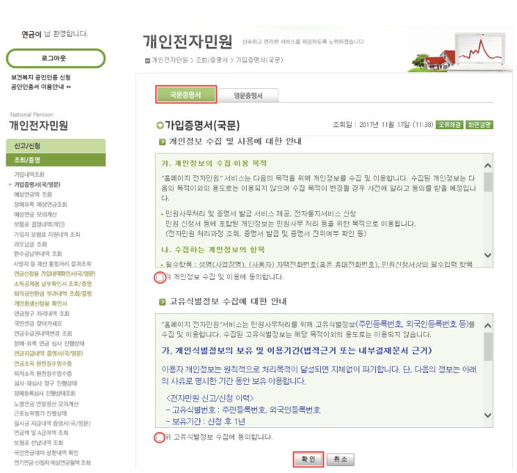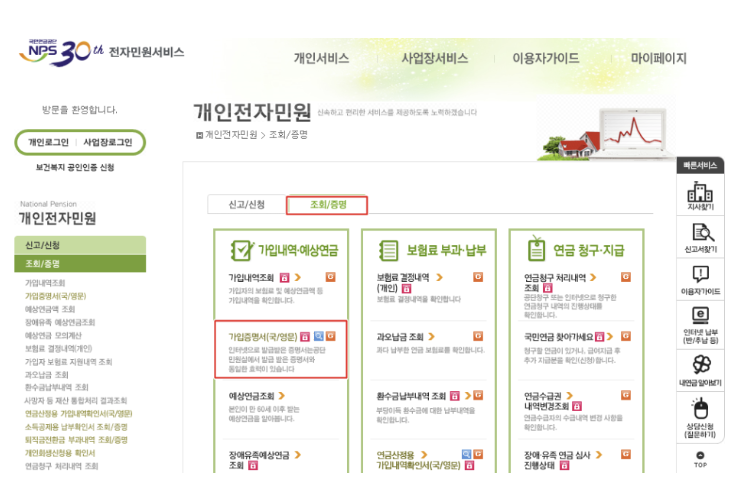 - 국민연금가입증명서 인터넷발급