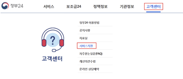2. 고객센터 그리고 서비스지원 메뉴 내에서 확인을 하실 수 있습니다.