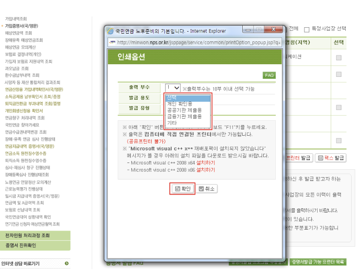 - 국민연금보험료 납부확인서