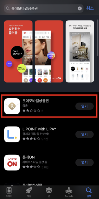 1. 우선 롯데상품권으로 교환해주기 위해 롯데모바일상품권 어플을 다운받습니다.