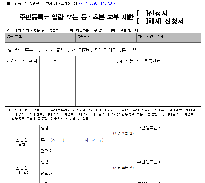 > 주민등록표 열람 제한 신청서 다운로드
