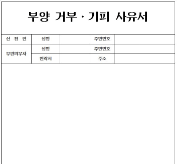 다음 글 주제는 가족관계 단절 증명서, 부양의무 거부 사유서, 부양의무자가 부양을 기피하거나 거부하는 경우, 부양의무 포기신청 입니다. 감사합니다.