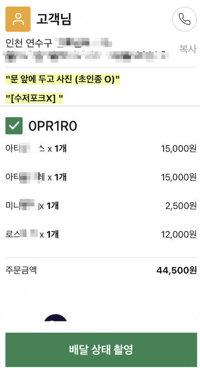 필자는 바로 다음 배달이 잡혀있는 상황이라