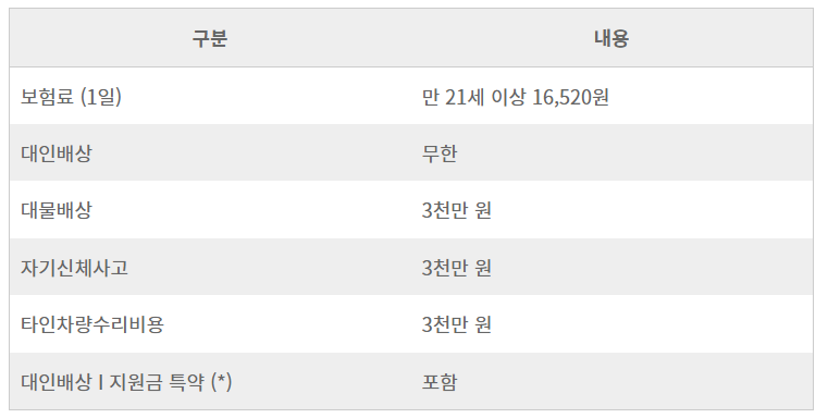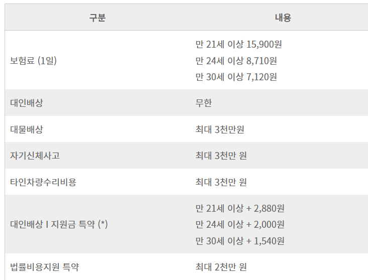 구체적인 일일 운전자 보험 가격 에 대하여 궁금하시면 다음 글을 참고하세요.