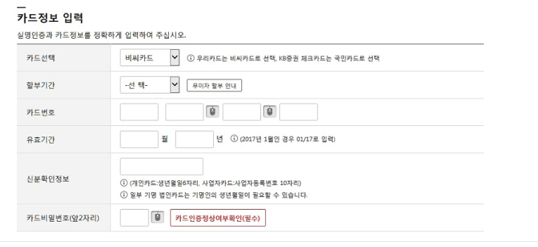 5. [신용카드 납부] 탭을 선택하고 카드정보를 입력합니다.