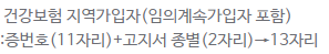 직장가입자의 경우 57로 시작하는 11자리와 종별코드로 입력하시면 됩니다.