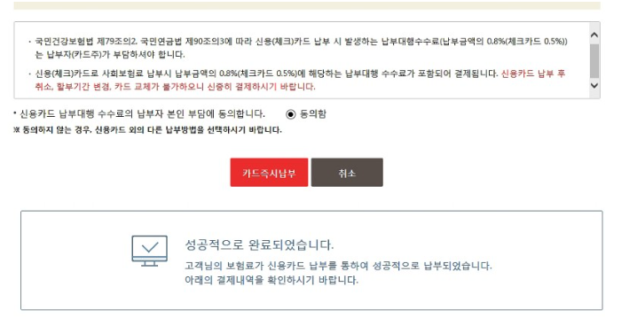 또한 국민건강보험료 납부를 포함한 4대 보험료를 카드로 납부하면 납부 취소할 수 없다는 점을 주의하시길 바랍니다.