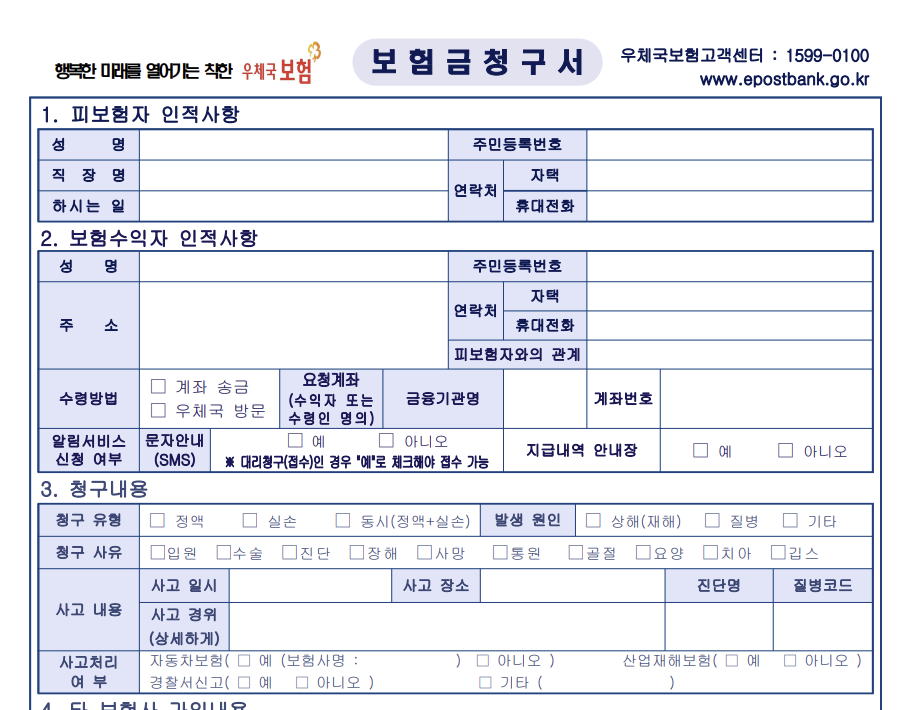 - 보험금 청구서(개인(신용)정보처리동의포함)