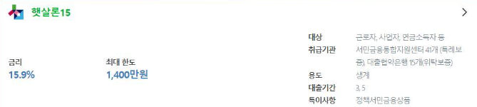 햇살론 대환대출에는 대표적으로 [서민금융진흥원 햇살론15] 상품이 있습니다. 햇살론15 상품의 자격조건에 대해 알아보겠습니다.
