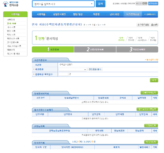 10. 사건 정보 부분을 모두 입력했으면 저장 후 다음으로 이동해서 소명자료/ 첨부서류를 업로드합니다.