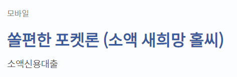신용카드를 보유하고 계시는 분들이라면 이용이 가능한 신한은행 쏠편한 포켓론은 소액 새희망 홀씨라고도 불리 정부지원 대출 상품으로도 많이 알려져 있습니다.